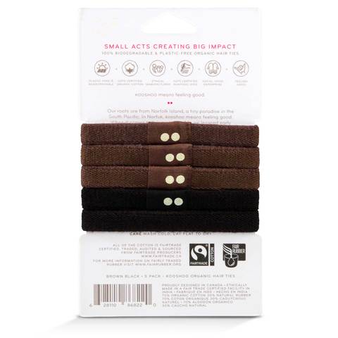 No reviewsRegular price $16.99Regular priceUnit price / perSale price $16.99Vendor:KooshooKooshoo Certified Organic Hair Ties - Black/Brown - 5 Pack