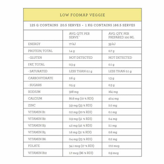 No reviewsRegular price $24.95Regular priceUnit price / perSale price $24.95Vendor:Nutra OrganicsNutra Organics Vegetable Broth Low FODMAP Veggie - 125g