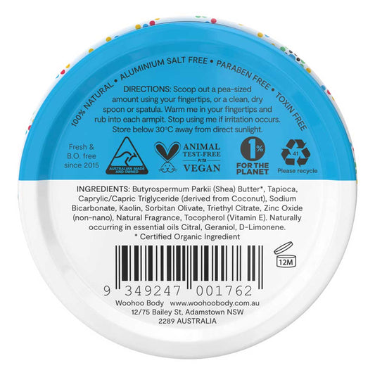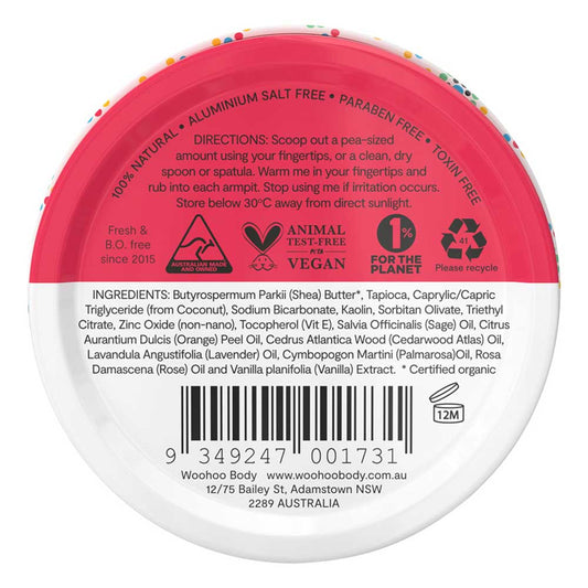 Woohoo Body natural deodorants provide a healthy, toxin-free solution for underarm care. Unlike conventional anti-perspirants that block sweat and contain harsh chemicals, Woohoo deodorants allow your body to sweat naturally while keeping you fresh and odor-free throughout the day. Crafted from 100% natural, vegan and organic ingredients, each deodorant is gentle on sensitive skin while delivering reliable protection against body odor.