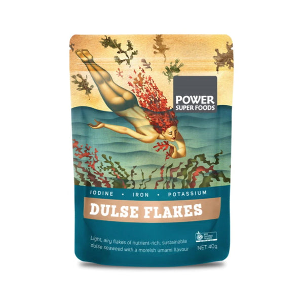 Power Super Foods Dulse Flakes are a premium form of nutrient-rich red seaweed harvested from the clean, cold waters of the North Atlantic. These naturally salty flakes are rich in essential minerals and add a savoury, umami flavour to soups, stews, salads, and seasonings.