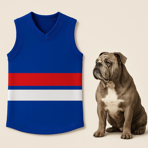 • Bold red, white, and blue colour swirl for Western Bulldogs fans