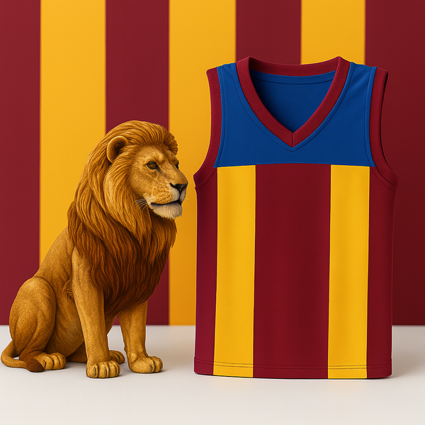 • Bold maroon, blue, and gold colour swirl for footy fans